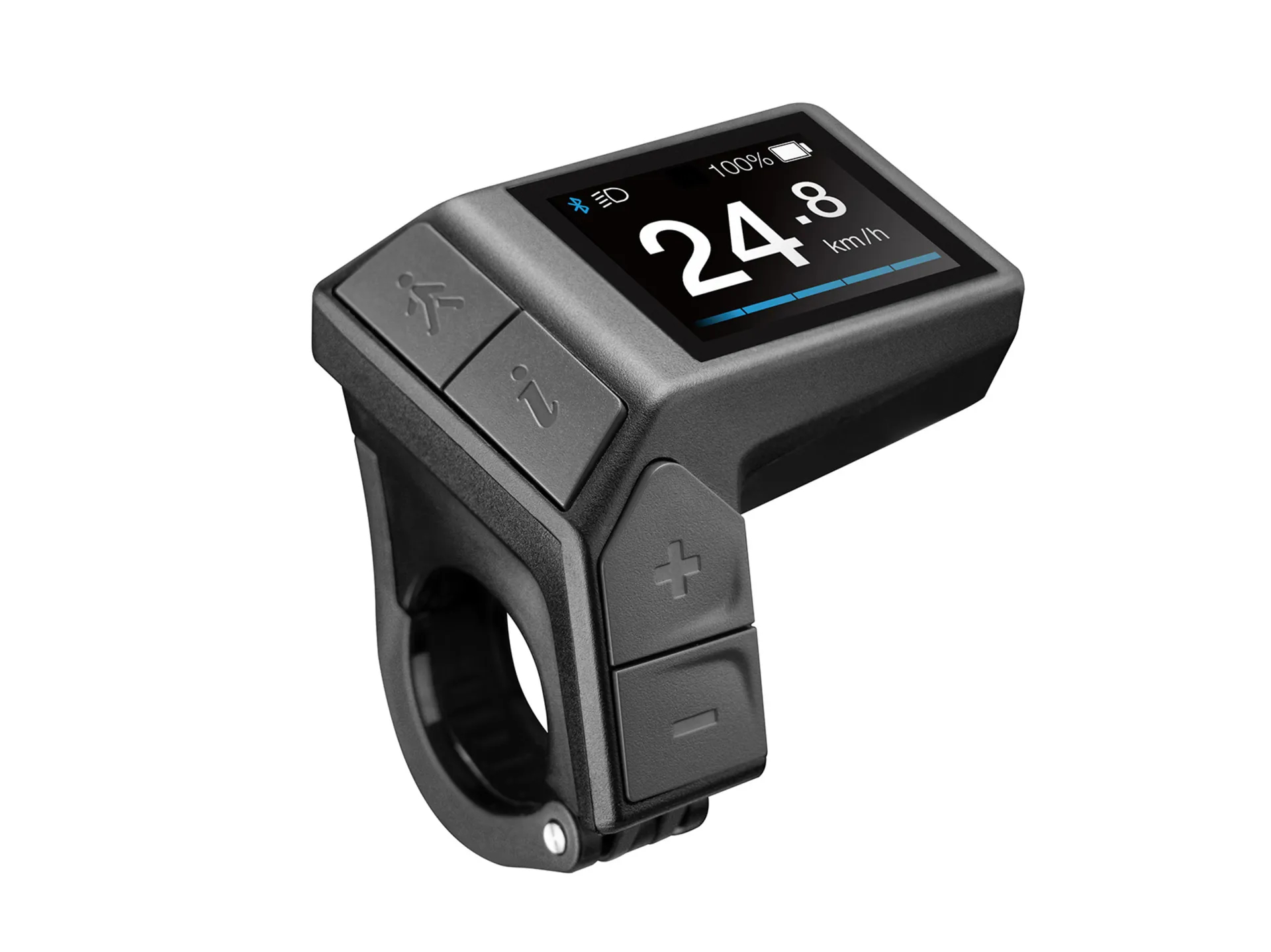 • Provides easy to read riding data such as speed, distance, time, cadence, and battery capacity