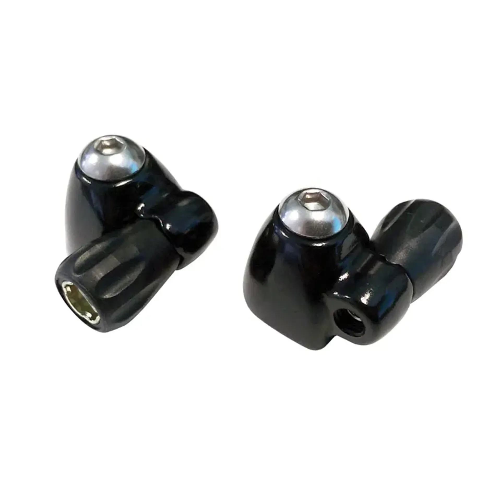 lightweight aluminium covers for traditional down tube lever mounting bosses with integrated cable stops and cable adjusters.