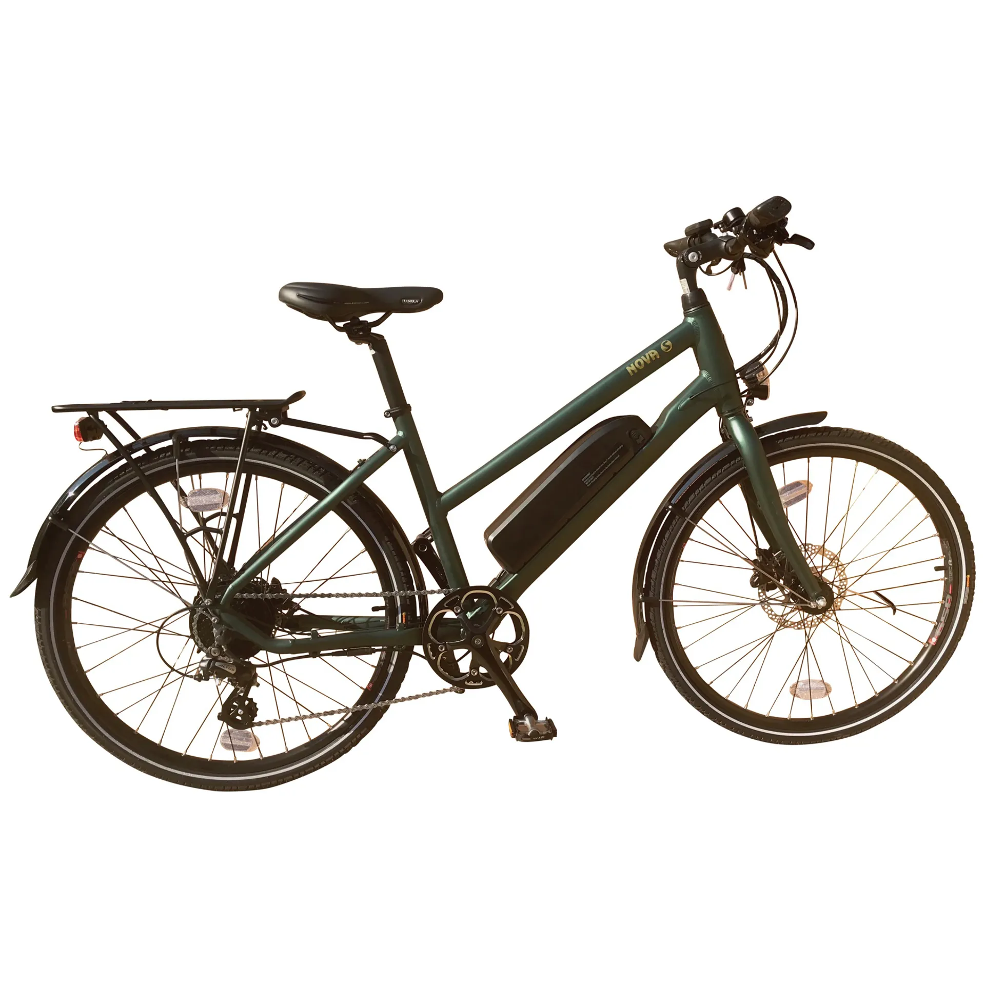 The Batribike Nova-S hybrid electric bike is a well-equipped hybrid commuter. Fitted with traditional 26” wheels the Nova is comfortable and versatile ride for town or countryside. The Nova-S has a step-over frame and is available in an attractive matt green.