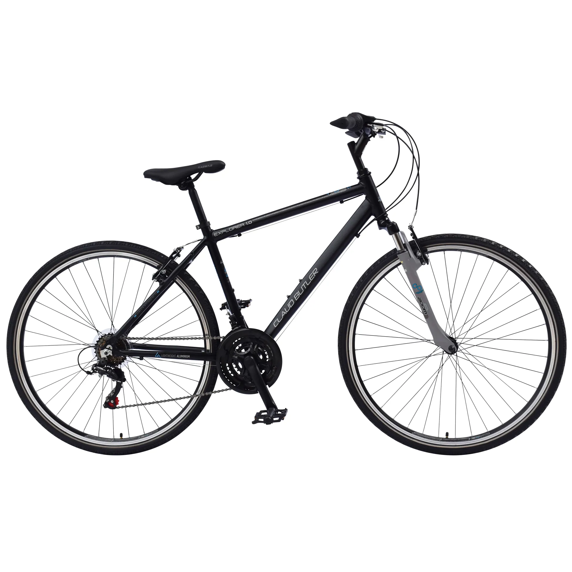 Be it a leisurely cycle around town, the daily commute to work taking the scenic route home or a comfortable everyday workhorse, Claud Butler Explorers are fantastic all-rounders thanks to their relaxed hybrid geometry, suspension forks and reliable transmission. Lightweight alloy frame, Shimano 18 speed Revoshift gears, double wall rims, 48-38-28T chainset and powerful v-brakes make the Explorer 1 a great bike, at a great price.