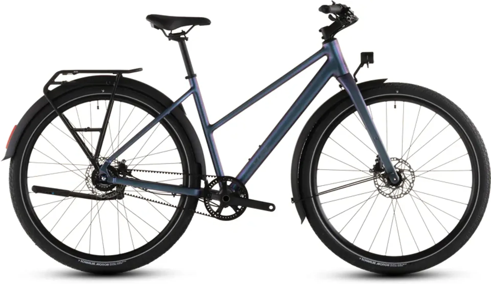 Fully equipped means what it says: a carrier for your possessions, mudguards to help keep you dry, hub dynamo-powered lights so you can see and be seen, and a kickstand for parking. At the heart of all this practicality is the Editor SLX FE's unapologetically elegant aluminium frame with full C:62 carbon fork – a taut, nimble and inspiring combination for urban cycling. The 11-speed Shimano Alfine hub, driven by a clean and quiet Gates carbon belt, offers a huge range of gears as well as quiet operation and low maintenance. And, with Schwalbe Motion Big Apple 55mm tyres and powerful Shimano hydraulic disc brakes, you can slow and stop safely whatever the weather throws at you.