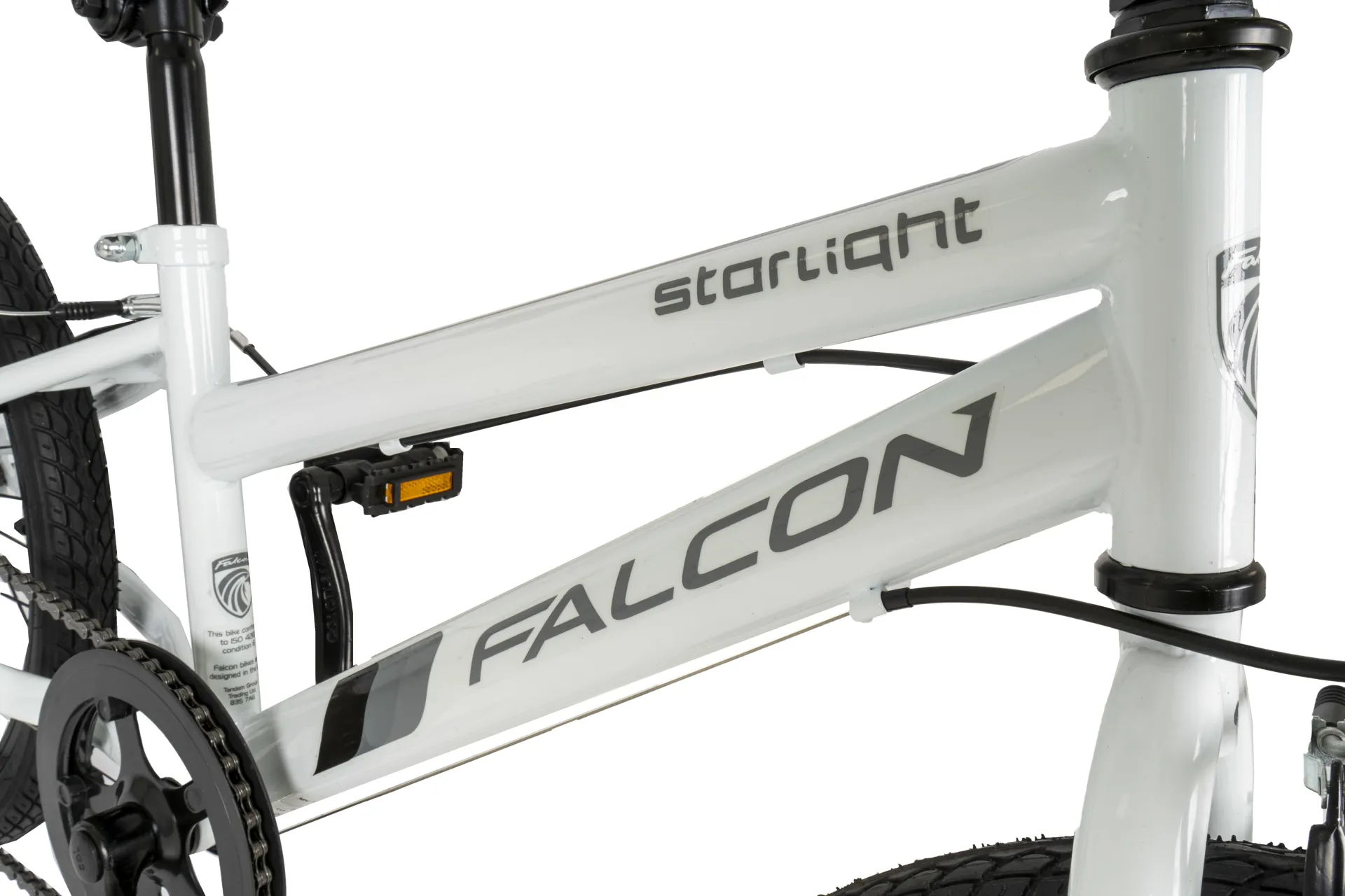 The falcon starlight rigid 20? Has been designed with junior riders aged 6-9 years in mind with a carefully considered frame geometry that helps ensure a comfortable and safe riding position. The hi-tensile steel frame is strong and durable while the lightweight rigid fork provides a stable ride for children not used to suspension, whilst reducing vibrations from the pavement thanks to the curved lower section. As well as being great looking, the starlight has a great spec to match. 6-speed gearing is powered by a Shimano rear derailleur and revoshift shifter, ensuring smooth gear changes without losing grip of the handlebars. The double-sided chainwheel guard protects fingers and clothes and prevents the chain from slipping off the chainring. MTB style pedals provide reassuring grip and the soft compound handlebar grips are durable and comfortable to hold. Braking is taken care of by reliable front and rear v-brakes with specially designed reach-adjustable brake levers that can be adjusted to accommodate smaller hands. The starlight is ideally suited to grow with young riders thanks to the longer 250mm seat post, adjustable saddle fore and aft position and quill handlebar stem that can be adjusted up and down to suit. The wheels are assembled with strong yet lightweight alloy rims and all-surface tyres for riding across a variety of terrain. The falcon starlight really is a cut above the rest and the perfect bike for young riders looking to progress and learn how to use gears. Most suitable for children aged 6-9 years. Inside leg measurement of 51-64 cm/20-25?
