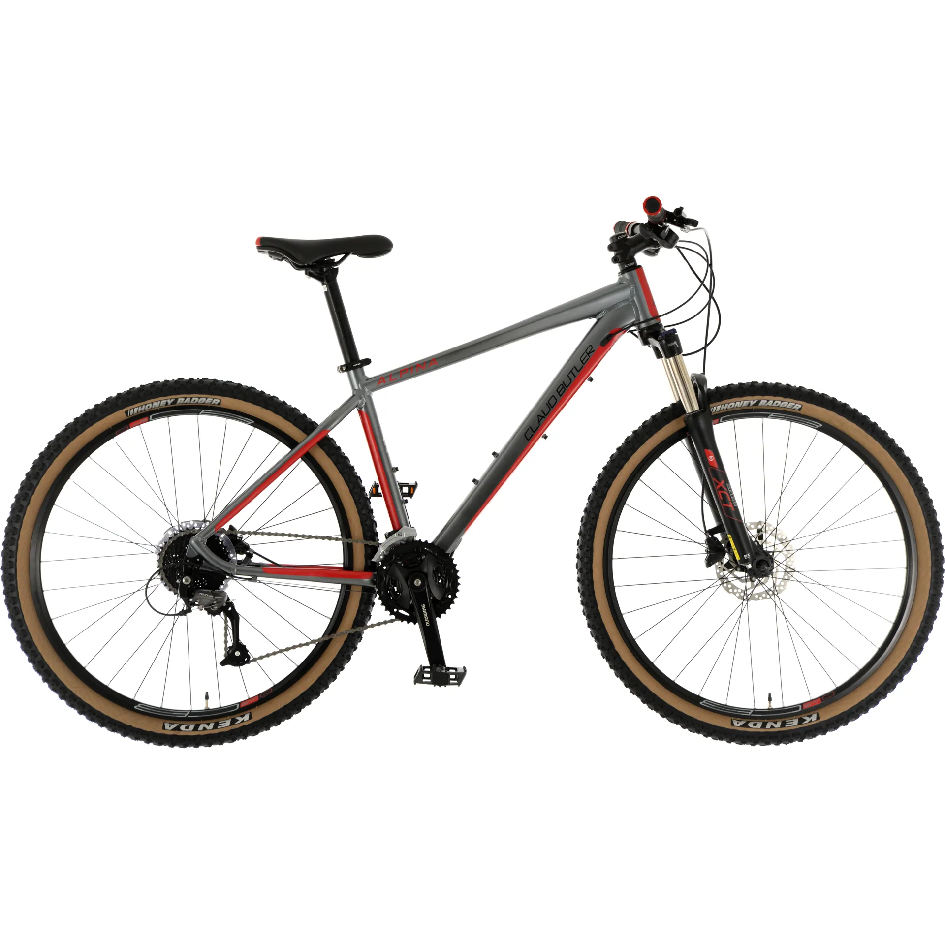 Not only does it look great, thanks to it's high quality grey/red paint job, aggressive geometry and clean looking internal cable routing, it also performs amazingly thanks to it's well thought out spec. Bolted onto Claud Butler's exclusive, hydro-formed alloy frame is SR Suntour's 100mm travel XCT suspension forks, Shimano hydraulic disc brakes, a 27spd Shimano drivetrain and a host of high quality components to make your experience on the Alpina, fast, comfortable and most of all fun!