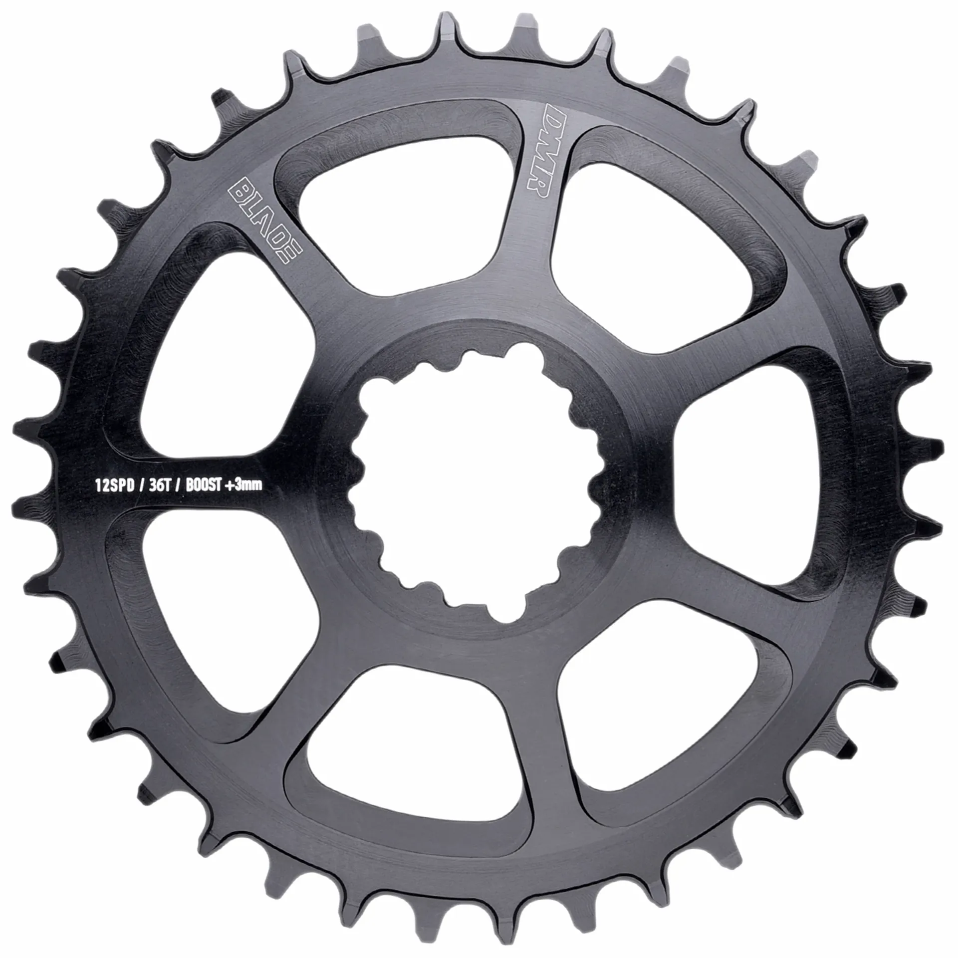 The DMR Blade direct mount chainring has a wide/narrow tooth design.Combined with a clutch mech, no chain device is needed.Stiff 4mm wide 7075-t6 aluminium chainring maintains direct power transfer.