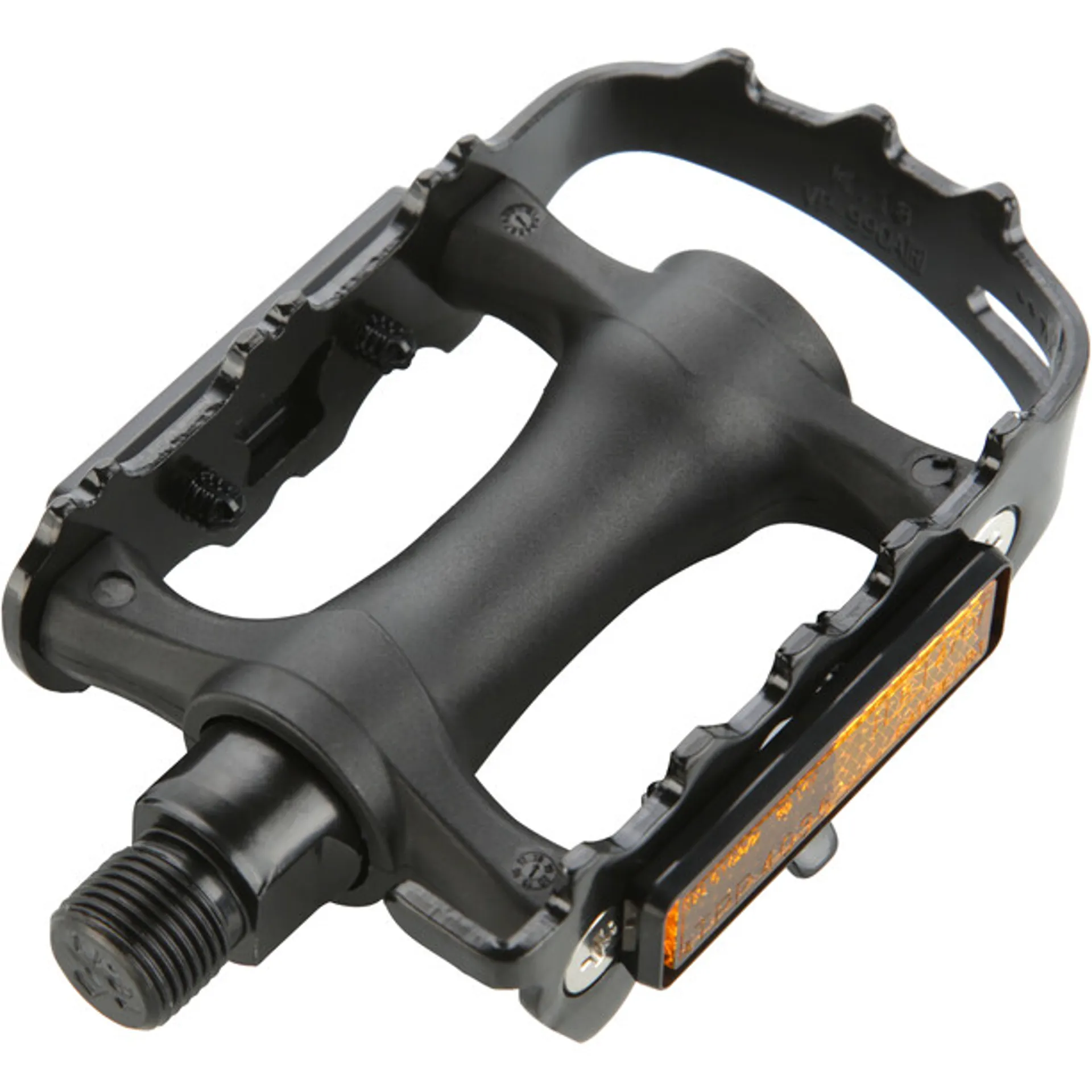 Affordable pedals with steel cage and plastic body, ideal for general/city use. Teeth on steel frame prevent feet slipping.