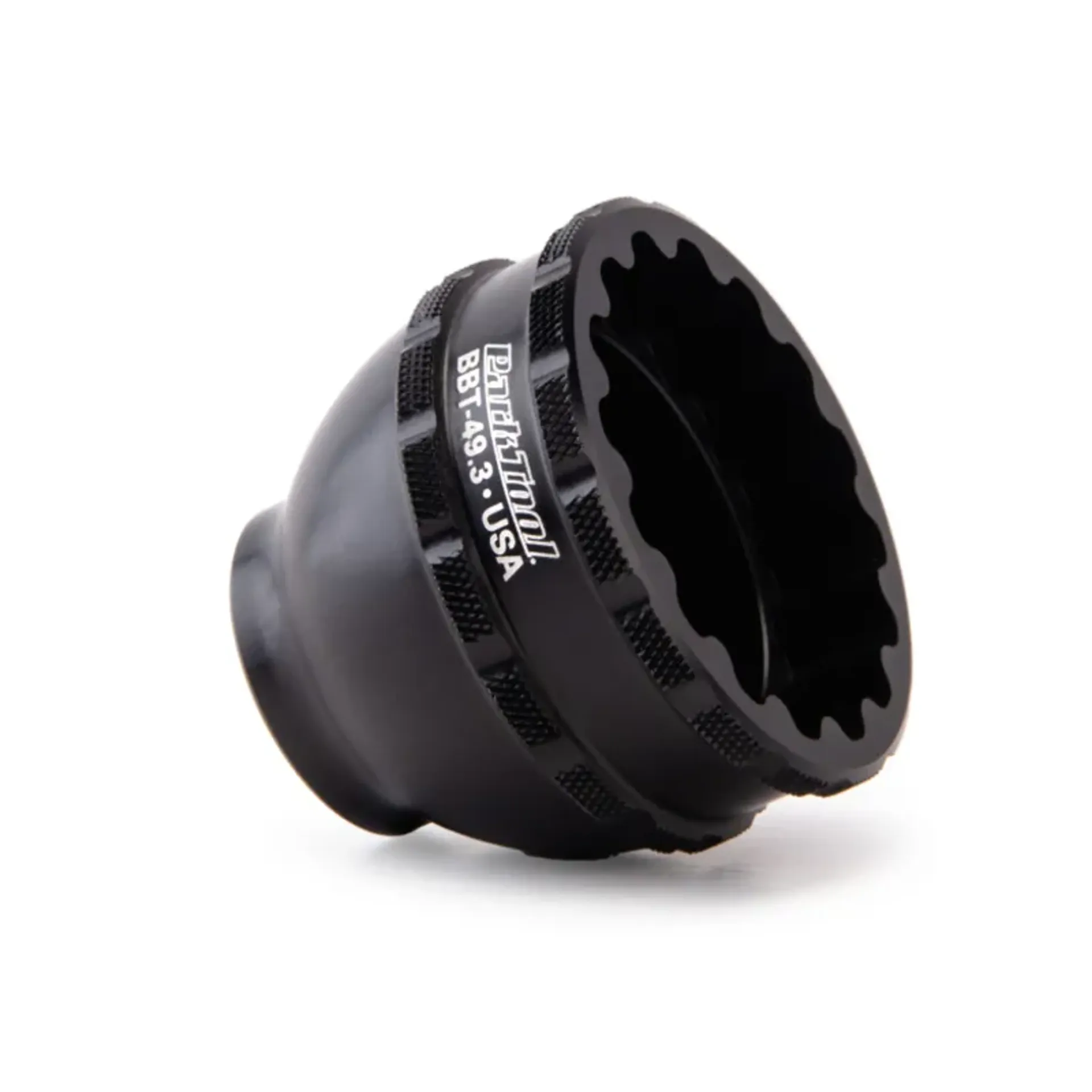 A precision CNC-machined aluminum tool for the installation and removal of select threaded bottom brackets with 16-notch tool fittings, including Shimano® XTR® BB93, Dura-Ace® BB9000, and Token® bottom brackets. Manufactured in-house by Park Tool, anodized for easy identification and featuring a ratchet/torque wrench-compatible 3/8" drive.